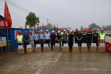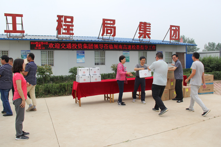 在周南高速、息邢高速王洛生副主席代表交通投資集團工會對高溫下堅持奮戰(zhàn)在施工一線的人員進行了慰問,分別給一線施工人員發(fā)放了防暑降溫藥品、清涼飲料等慰問品。
