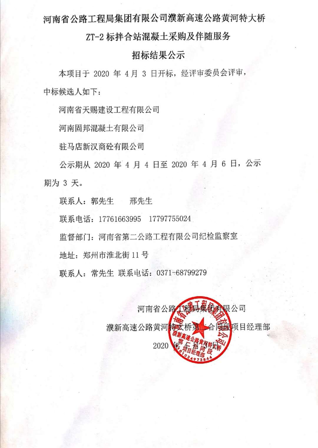 濮新高速公路黃河特大橋ZT-2標(biāo)拌合站混凝土采購及伴隨服務(wù)招標(biāo)結(jié)果公示.jpg